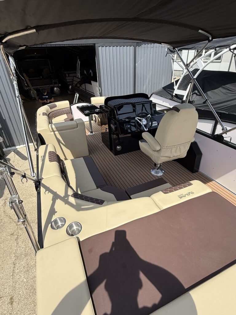 Hertz audio system with RGB LED lighting and 4 x 8" premium speakers RGB LED ambient lighting under seats and along the full boat length LED-illuminated cup holders Dual-deck tables Depth sounder